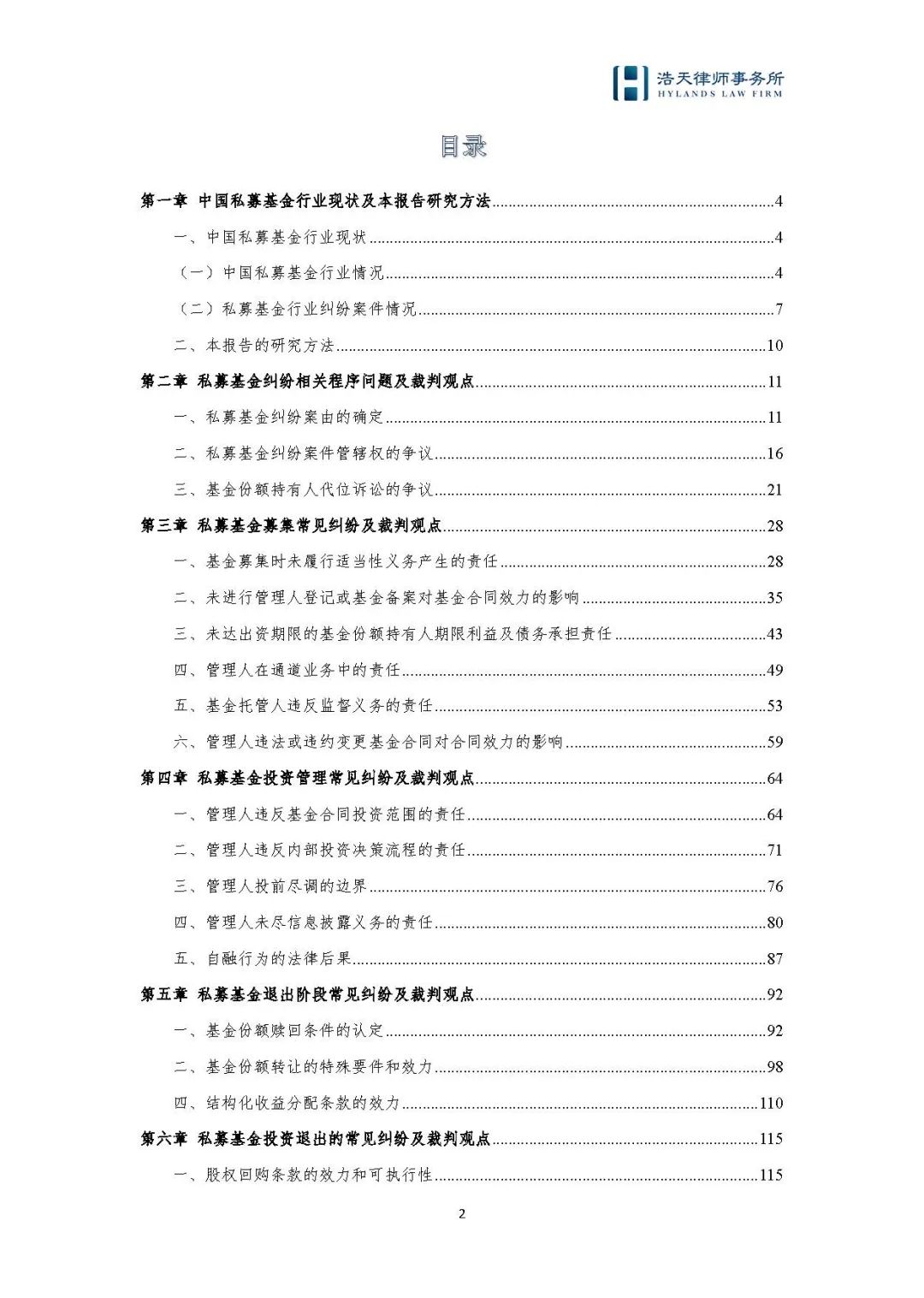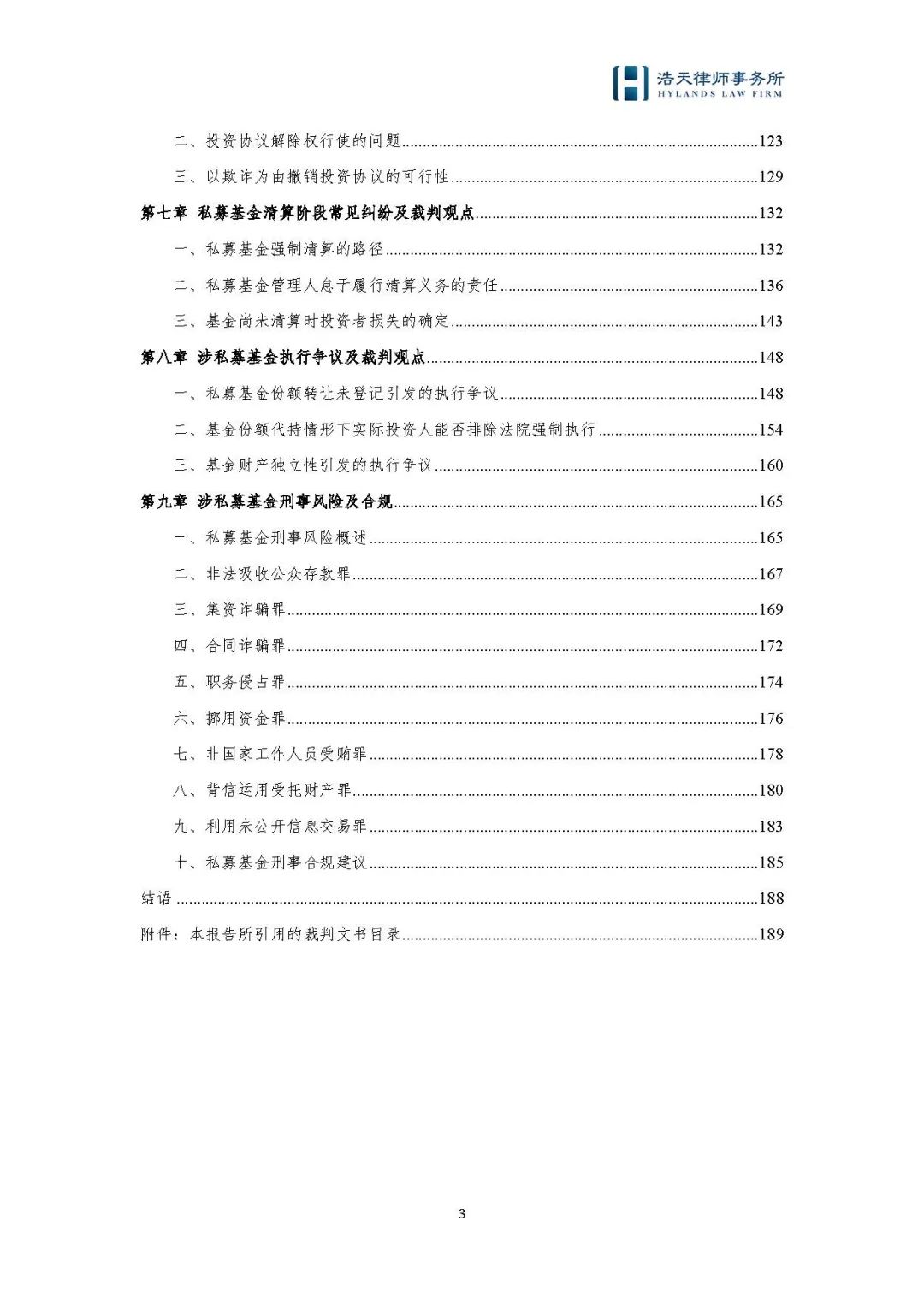 鉴于此,浩天律师事务所汇集了所内多个专业团队的力量,结合业务实践,从私募基金纠纷相关程序问题、募集、投资、管理、退出和清算阶段常见纠纷、执行争议纠纷、私募基金管理人或从业人员涉刑事案件等角度,系统梳理私募基金行业争议解决领域相关问题的裁判思路和审判要点,精心撰写了《私募基金争议解决蓝皮书》(“《蓝皮书》”)。