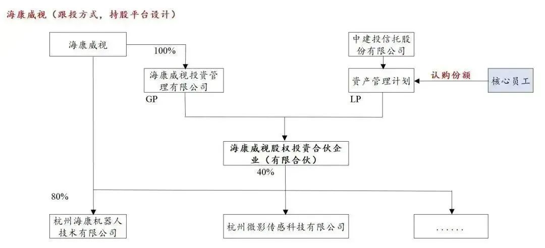 公司投资的创新业务,核心员工跟进投资,通过跟投平台间接持有创新业务子公司股权。核心员工跟投创新业务子公司,通过员工出资设立的法律实体,包括有限责任公司和有限合伙企业等形式,间接投资创新业务子公司,所设立的法律实体统称跟投平台。海康威视通过设立专业子公司方式开展项目跟投,目前共计6家跟投项目子公司:
