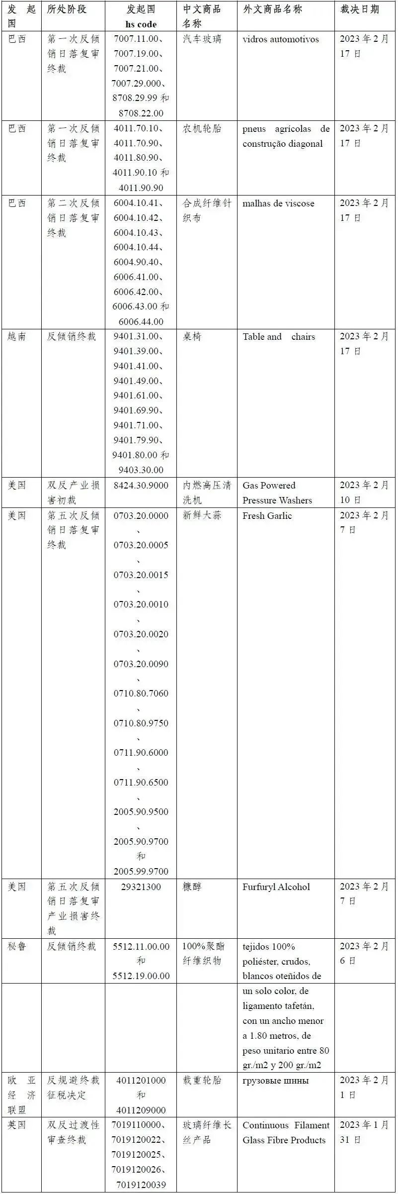 2023年2月贸易救济“出口应诉”动态更新汇总