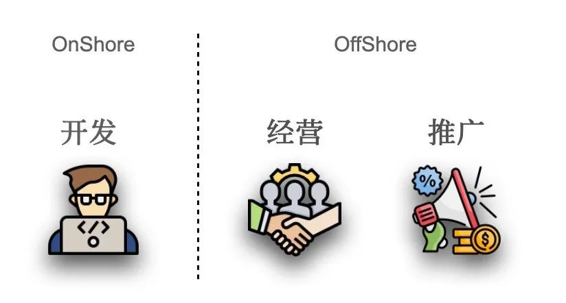 然而,与项目的推广和经营相对的是,Web 3.0项目在中国境内的开发却不是很容易转移至海外。虽然部分项目最终完全转移至海外,但是出于成本以及操作可能性的现实及考虑,更多的Web 3.0项目保留了在中国境内的研发活动和研发人员,仅仅将目标客户和经营活动转移至境外,下文将下图所示的这种“开发在境内,经营推广在境外”结构统称为跨境结构。