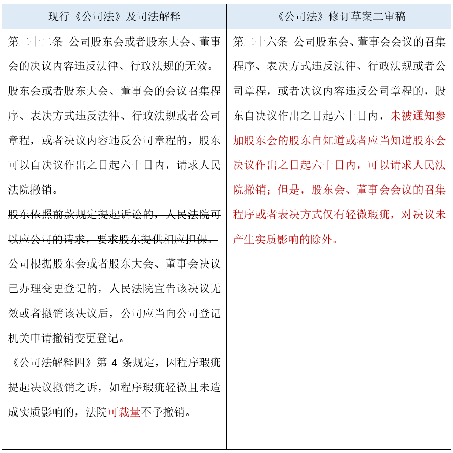 二、将“召集程序或者表决方式轻微瑕疵未造成实质影响”明确为可撤销范围的除外情形