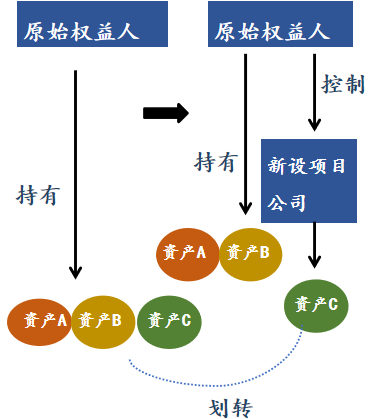1. 资产划转:先设立项目公司,将原始权益人所持有的基础设施项目直接划转给项目公司,具体如下图所示: