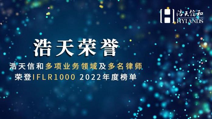 浩天信和多项业务领域及多名律师荣登IFLR1000 2022年度榜单
