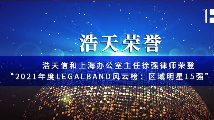 浩天信和上海办公室主任徐强律师荣登“2021年度LEGALBAND风云榜:区域明星15强”榜单