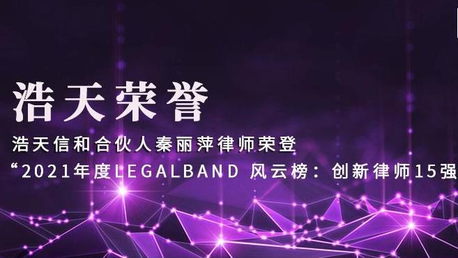 浩天信和合伙人秦丽萍律师荣登“2021年度LEGALBAND 风云榜:创新律师15强”榜单