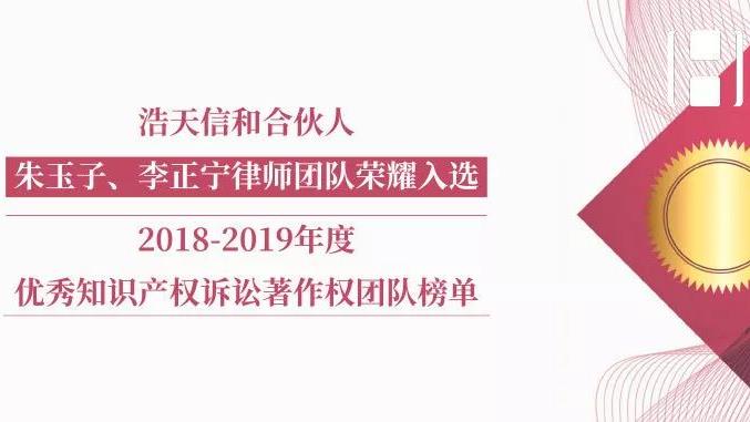 2019年10月18日,知产宝(IPHOUSE)、知产力与IPRdaily 联合发布了2018-2019年度中国十佳知识产权诉讼代理机构综合榜、新锐榜、著作权榜、商标榜、专利榜。浩天信和合伙人朱玉子、李正宁律师团队荣耀入选2018-2019年度优秀知识产权诉讼著作权团队榜单。此次知识产权诉讼代理机构/团队TOP榜的排名,是知产宝依托其近百万篇知识产权裁判文书的数据库基础,提取了2018年近15万份裁判文书并经过精准的标签提取、解析、人工清洗,对报
