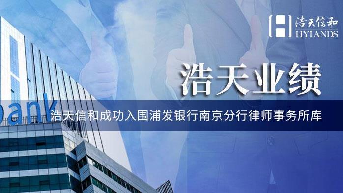 浩天信和成功入围浦发银行南京分行律师事务所库