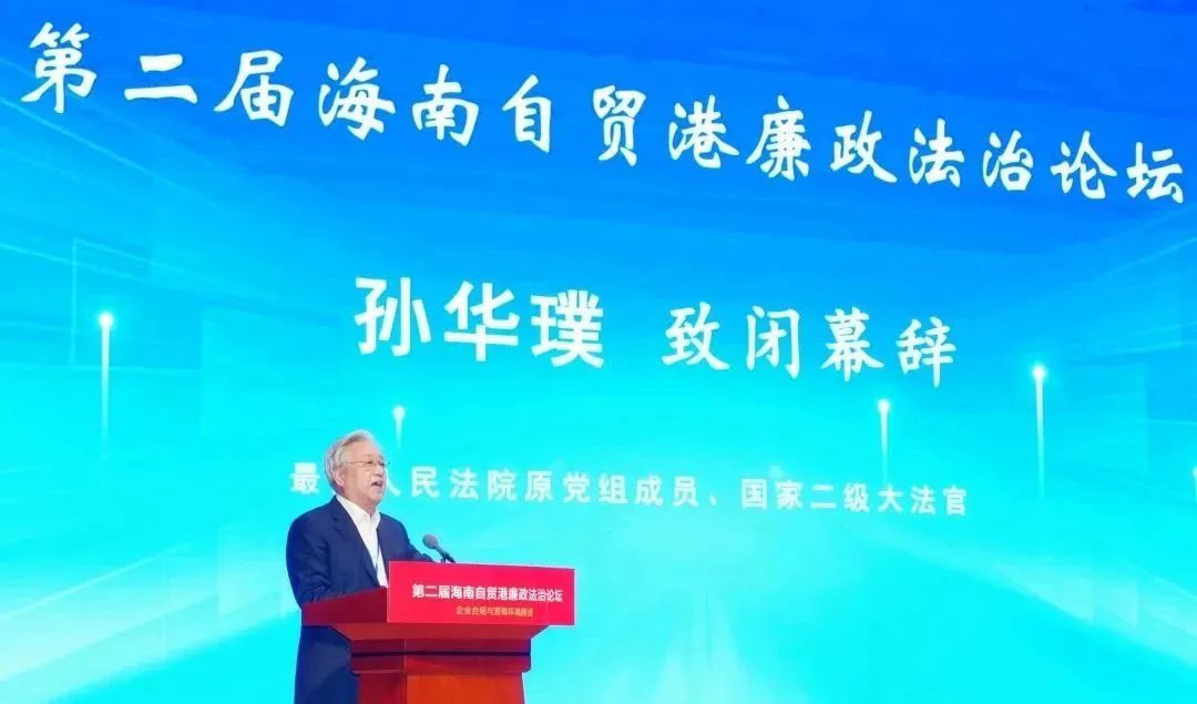 最高人民法院原党组成员、国家二级大法官孙华璞向“第二届海南自贸港廉政法治论坛”致闭幕辞。他指出,当前党中央赋予了海南建设全岛自由贸易试验区和中国特色自由贸易港的重大使命,未来5年是海南自由贸易港建设的关键期,必须全面加强党的领导和党的建设,坚持以全面从严治党引领自由贸易港建设。本次论坛政治站位高、结合实际紧密、学术氛围浓厚,在2023年中央经济工作召开后,从廉政法治角度探讨企业合规与营商环境建设,助力自贸港高质量发展,是贯彻落实总书记系列重要讲话精神和重要指示批示精神的具体实践。