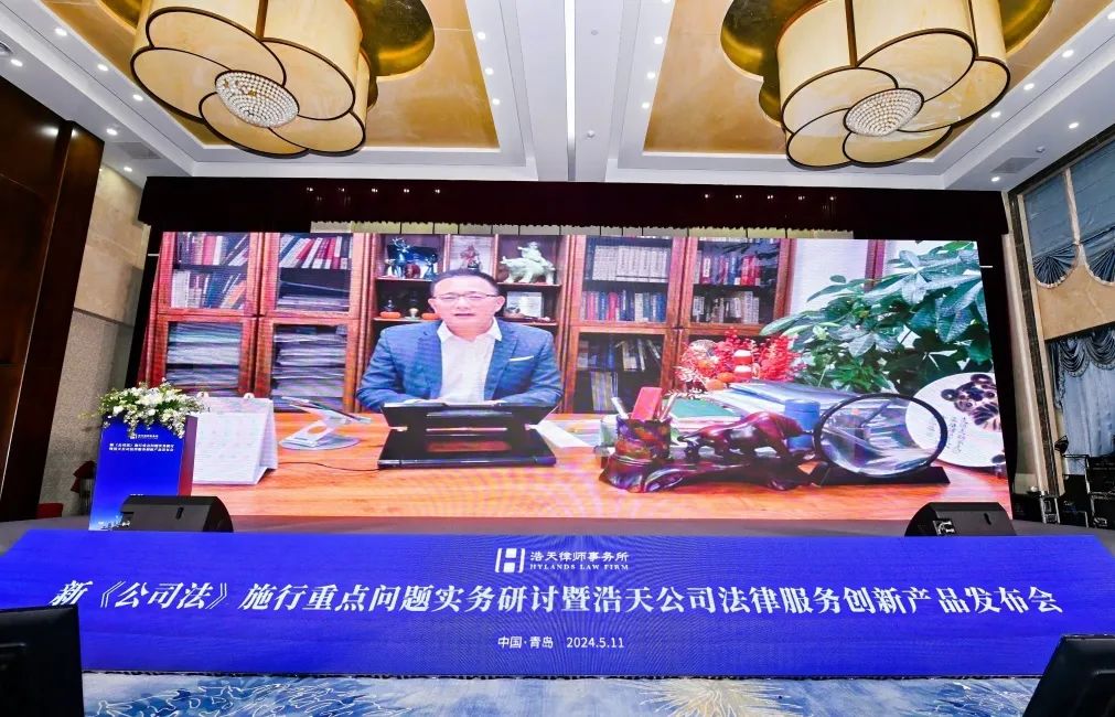 2024年5月11日,由北京浩天律师事务所主办,浩天全国公司业务专业委员会、浩天全国家族财富管理与传承行业委员会、北京浩天(青岛)律师事务所承办的“新《公司法》施行重点问题实务研讨暨浩天公司法律服务创新产品发布会”在青岛汉卓酒店成功举办。本次论坛旨在为企业提供新《公司法》实施后专业法律服务解决方案,全力提升浩天律师事务所在公司法领域的客户服务水平,为推动企业发展注入新的动力和活力!来自不同行业的近200位公司董事、高管莅临了此次盛会,浩天律师事务所及各地分所50余位合伙人、律师参会,共同研讨新《公司法》施行重要问题。