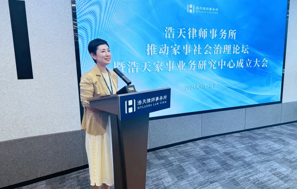 2024年6月28日下午2点,北京浩天律师事务所“推动家事社会治理暨浩天家事业务研究中心成立大会”成功举办,此次活动吸引了所内外律师、咨询公司、媒体及金融机构从业人员共50余人的参加。此次“推动家事社会治理暨浩天家事业务研究中心成立大会”由浩天律师事务所家族财富管理与传承行业委员会主办,活动邀请了四位在业界久负盛名的专家学者共话家事。他们分别是:中国法学会婚姻法家庭法研究会常务副会长、北京市法学会民商法研究会会长、中国人民大学婚姻家庭法研究所执行所长龙翼飞教授;华东政法大学财富管理研究中心副主任、连续12年钱伯斯亚太地区私人客户/财富管理推荐律师、中伦(上海)律师事务所合伙人贾明军律师;全国律协婚姻家庭法专业委员会副主任、天津律协婚姻家事专业委员会主任、天津优法律师事务所执行主任姚丹律师;中国婚姻法学会理事、西南政法大学婚姻家事与财富传承研究中心主任、浩天重庆办公室律师李俊副教授。