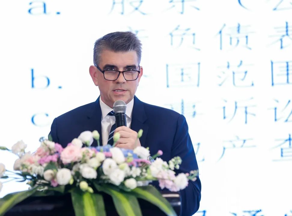 北京仲裁委员会、北京国际仲裁院业务拓展部(国际案件处)张皓亮处长为本次论坛致辞,他指出,在全球经济格局深度调整的当下,跨境债务纠纷日益复杂多元,深化跨境司法协作机制、探索建立常态化信息共享平台显得尤为重要。