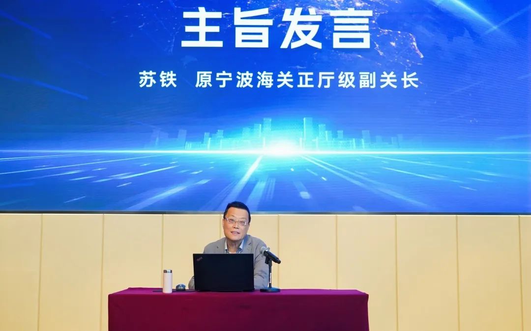 签约结束后,由原宁波海关正厅级副关长、中国海关学会常务理事、宁波海关学会副会长、海关总署一级专家苏铁作主旨发言,基于“破局·重构”的论坛主题,结合国际时事动态,凭借在海关领域的丰富经验和深厚专业知识,为在场听众深入剖析中美关税战下企业应对海关事务的关键要点和策略,助力企业更好应对海关监管和贸易政策的变化。