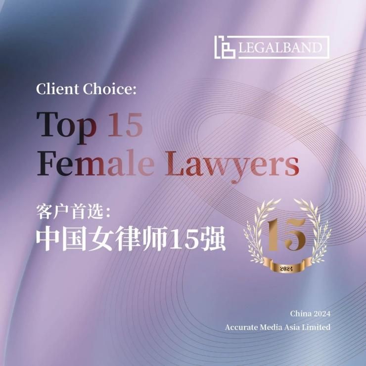 LEGALBAND是国际媒体公司Accurate Media旗下的专业法律评级机构,总部位于香港,在中国大陆拥有驻地调研团队。本次评选,LEGALBAND重点参考了各大律所的推荐材料、律师自荐材料以及客户反馈信息等,同时结合其中国区驻地调研团队对中国女律师群体的长期关注与洞察,最终选出15位中国大陆地区最受客户青睐的女律师。
