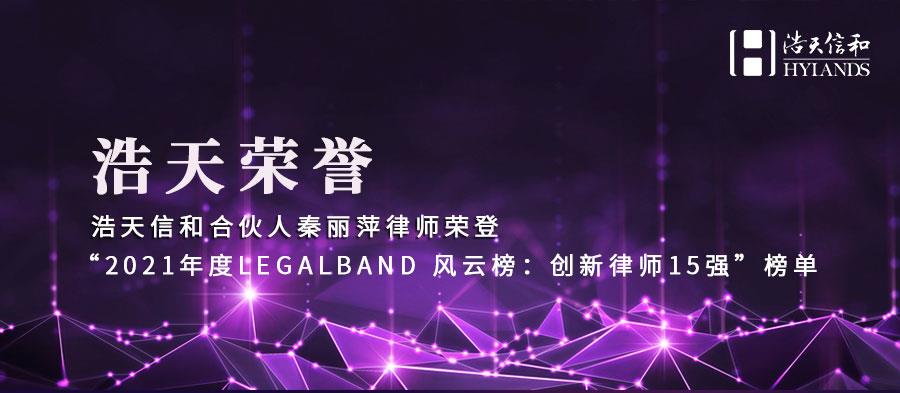 2021年8月31日,知名法律评级机构LEGALBAND公布了“2021年度LEGALBAND 风云榜:创新律师15强”榜单,浩天信和律师事务所合伙人秦丽萍律师凭借卓越的客户口碑及市场表现荣誉上榜。