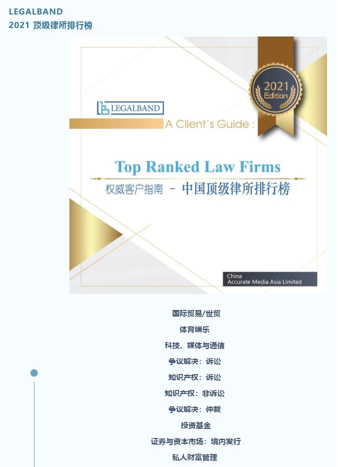 浩天信和10大业务领域、7位律师荣登LEGALBAND 2021年度中国顶级律所、律师排行榜