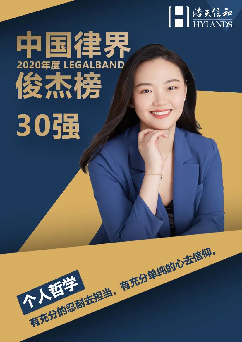 2020年9月10日,国际法律评级机构LEGALBAND公布了《2020年度中国律界俊杰榜30强》榜单,本次评选基于律所推荐材料、律师申报材料以及客户反馈信息等内容,综合考量了律师的业内评价、项目经验及工作经历等核心要素,最终评选出了30位中国大陆地区最优秀的青年律师。北京市浩天信和律师事务所的宫铭律师凭借出色的专业能力和高度的客户认可名列其中,充分体现了北京市浩天信和律师事务所青年律师的强劲实力。