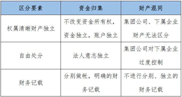 在我国,有很多大型集团会对集团内部资金进行资金归集,设立专款账户甚至设立专门的财务公司对资金进行统一管理,通常操作为成员公司在财务公司设立专门账户,采用“收支两条线”的资金归集管理模式,并且对于每笔款项收入、支出都有详细的财务记载。以上做法在财政部《企业国有资本与财务管理暂行办法》第七条、第二十条,《企业财务通则》第二十三条,《企业集团财务公司管理办法》第十九条等条文中均有规定。对于集团公司资金归集,是否符合法人人格否认语境下的财务混同情形,核心在于资金归集是否影响集团下各子公司是否有自己的独立财产及独立意思表示。